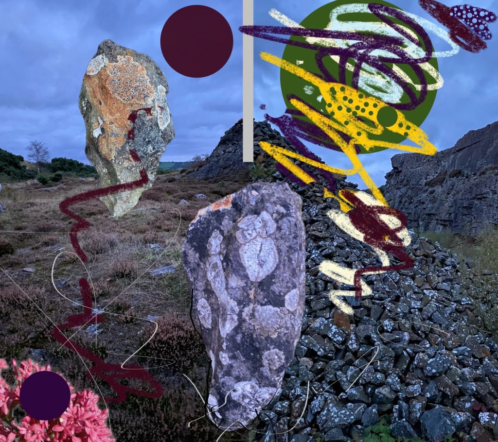 Montage drawings made in situ in a disused Welsh stone quarry.